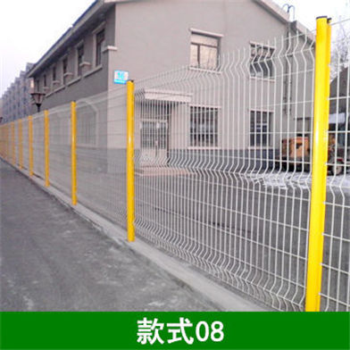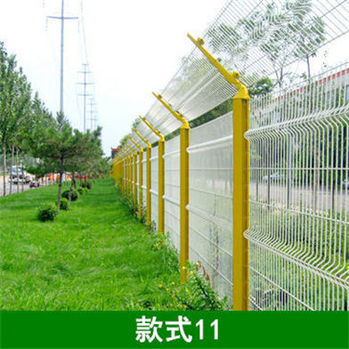 桃形柱护栏网指的就是护栏网的立柱形状是桃形形状,其网片一般为双边丝网片,并且带有折弯,折弯道数一般为1-3道折弯;网孔大小一般为9*17cm;立柱高度一般为2.1m,立柱壁厚一般是0.5/0.8/1.0/1.2/1.5mm;丝经一般为350#、380#、400#、450#、500#等型号;钢丝数量一般为11*33根;常规一整套的尺寸为1.8*3m。
