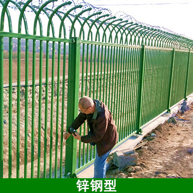 2.立柱采用方型冷拔钢管,外边长50mm,壁厚4mm,两端加堵头,埋深40cm,斜撑采用45X45X 4mm角钢,网片采用φ 4mm低碳钢丝,间距7. 5X15cm (宽X高),顶部以下30cm处向外折弯30°。网片框架为40X 4mm扁钢,网片沿立柱中心线设置。