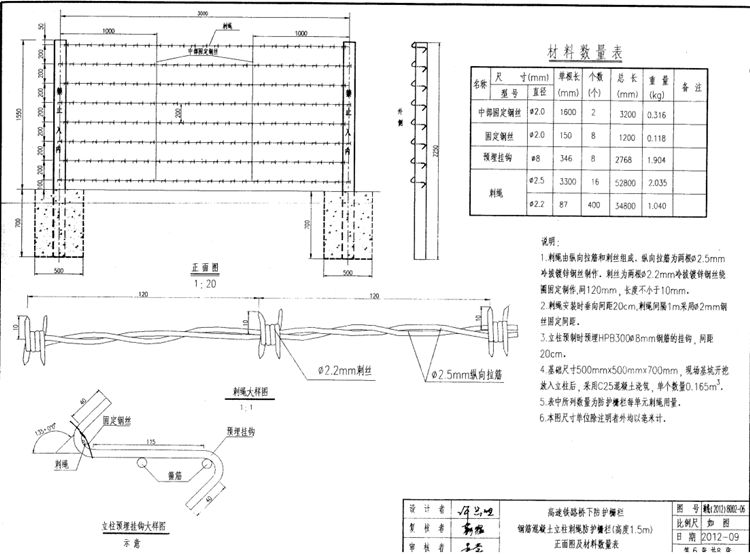 3.钢筋混凝士立柱使用年限按30年设计,金属网片使用年限按15年设计,剌绳使 用年限按8~ 10年设计。