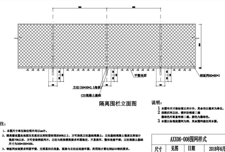 5.本图以标准段围网为例,其余围网做法同本图。