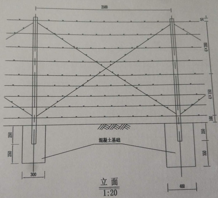 8、普通路段设置基础混凝土Ⅰ,每隔100m及端头设置基础混凝土Ⅱ。