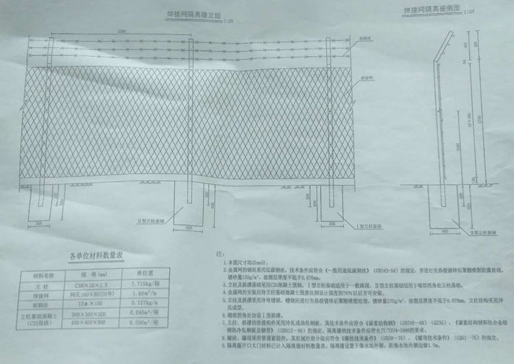4、钢板网护栏金属网的安装应待立柱基础混凝土强度达到设计强度的70%以后方可安装。