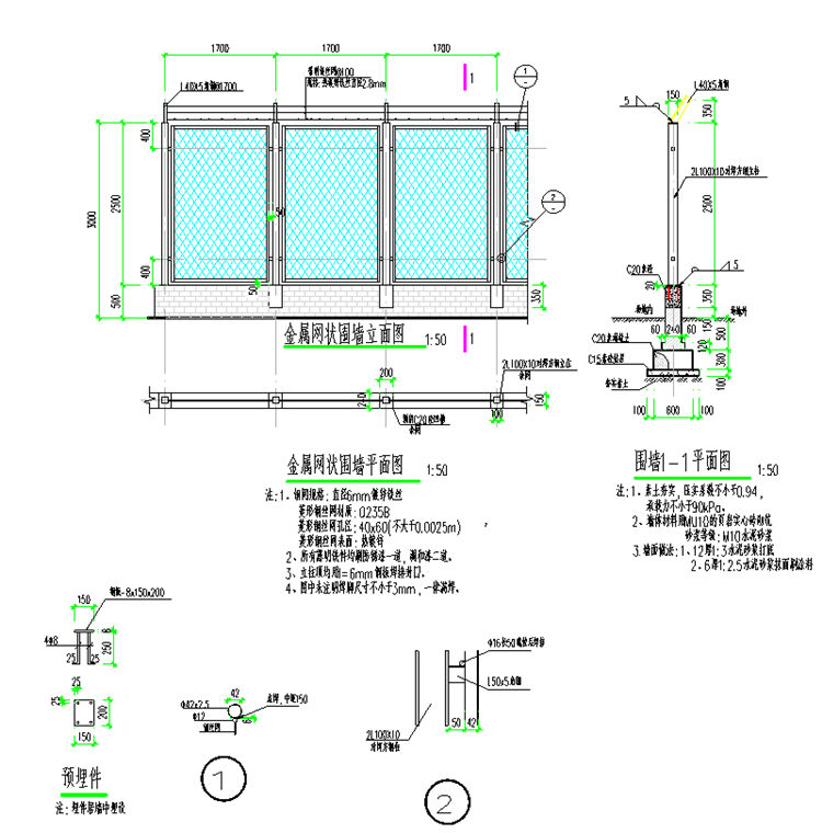 二、金属网状围墙围网安装基础