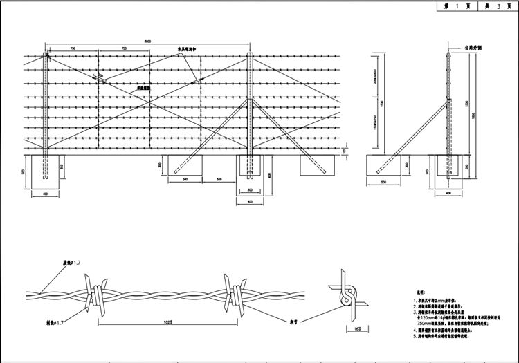 3、刺钢丝网隔离栅技术要求及施工注意事项