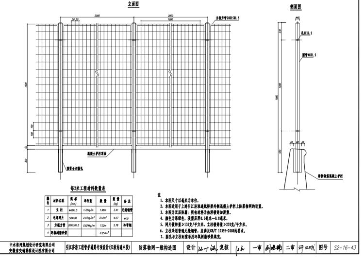 2、本图适用于上跨引江济淮通航桥梁外恻混凝土护栏上防落物网的设置。