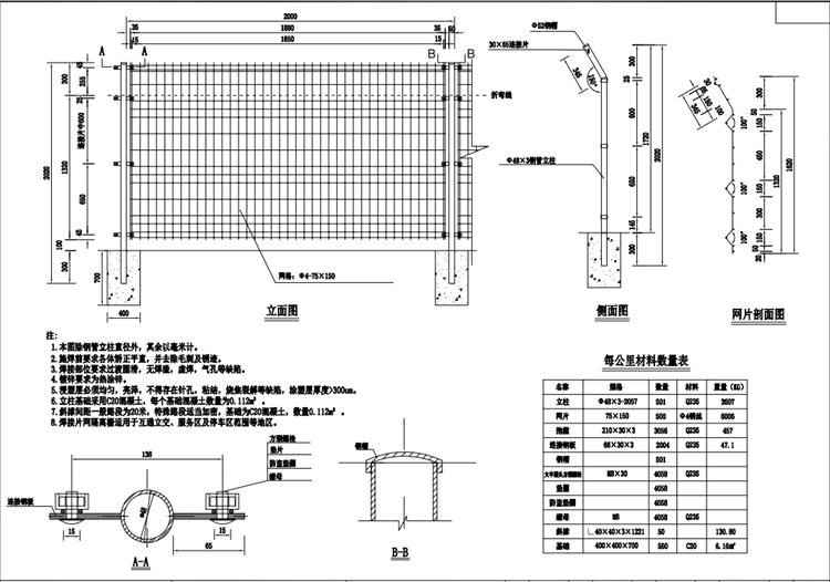 6.立柱基础采用C20混凝土,每个基础混凝土数量为0. 112m3。