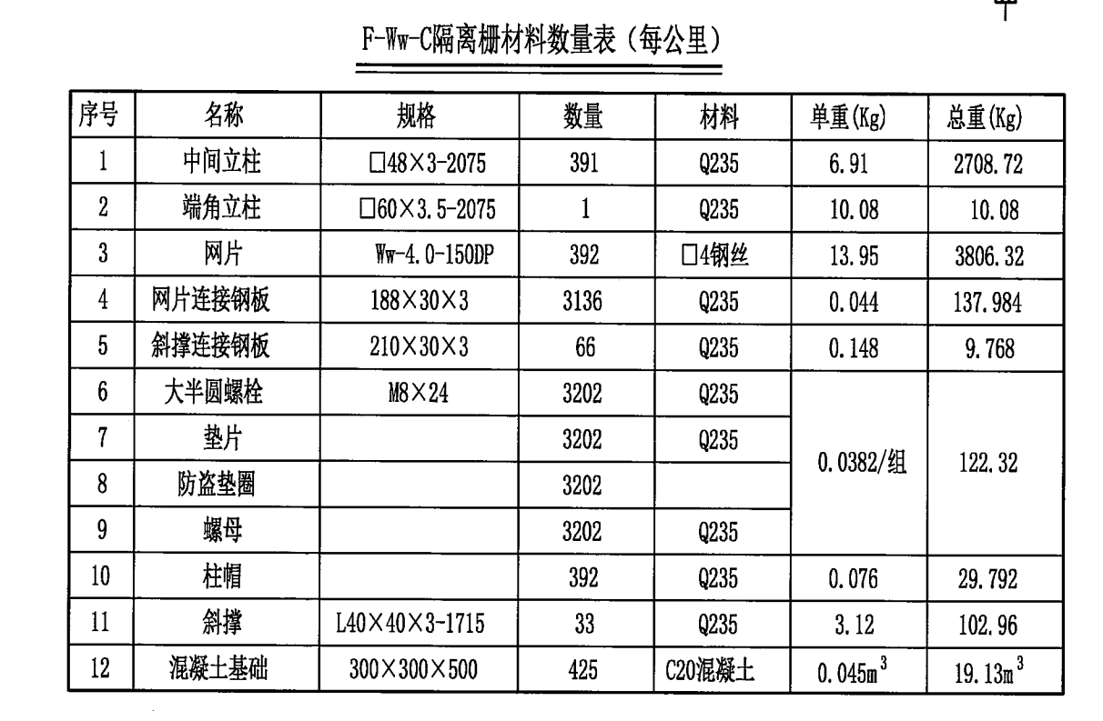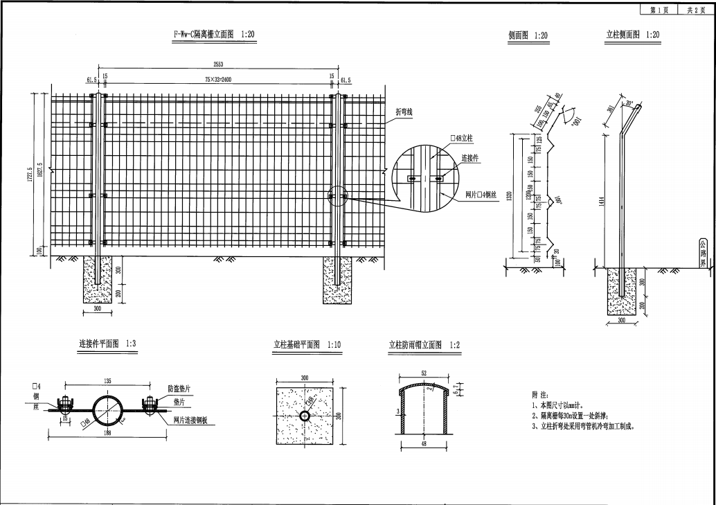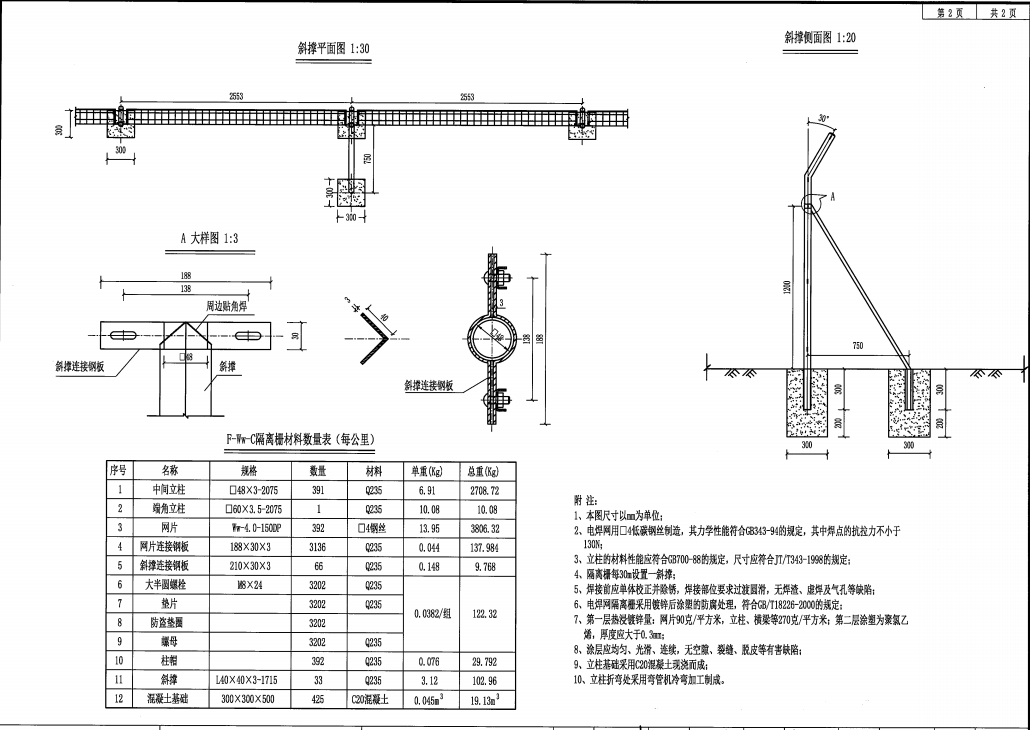 4、隔离栅每30m设置一斜撑。