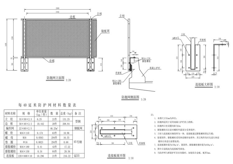 3.防抛网立柱设置间距为2m。
