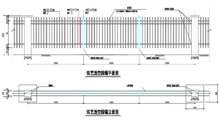 铁艺透空围墙备注: