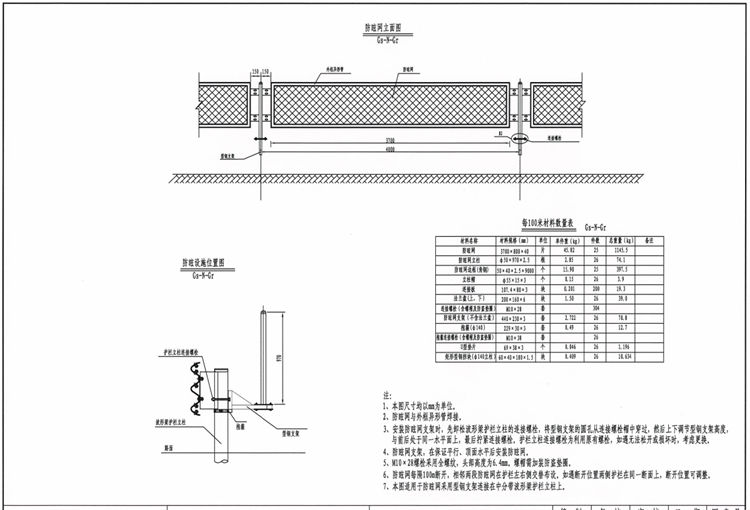 6、防眩网每100m断开,相邻两段防眩网在护栏左右侧交替布设。如遇断开位置两侧护栏在同一断面上,断开位置可调整。