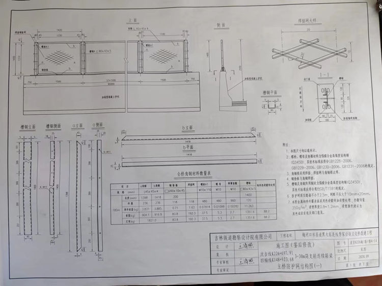 2.防护网防落物网螺栓、螺母及垫圈材料为低碳合金高强度结构钢(Q345D),其技术标准应符合GB1228-2006,GB1229-2006,GB1230-2006,GB1231-2006的规定。