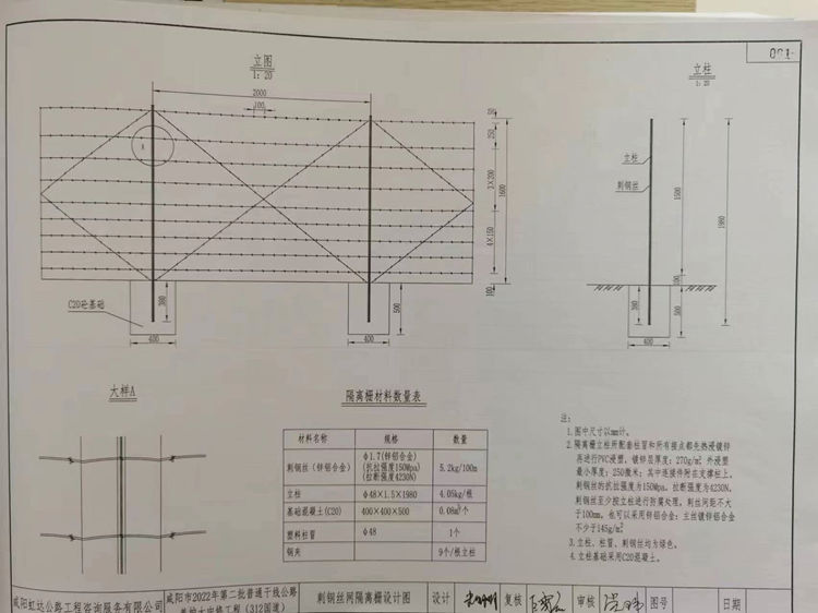 4.刺钢丝网隔离栅立柱基础采用C20混凝土。