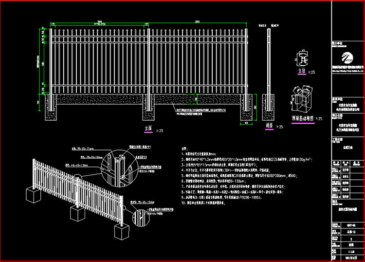 1、本图热镀锌栅栏所有尺寸计量单位为mm。