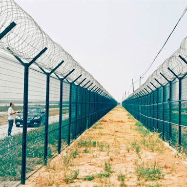 8. 高密网防护网顶部设一道蛇腹型刀刺网,刀刺网材质为304不锈钢,圈径不小于600mm,每米长度不少于7圈,圈距排列均匀,刀片形式为BTO-22(芯线直径为2.5±0.1mm,刀片厚0.5±0.05mm,刀片长22±1mm,刀片宽15±1mm,刀片间距为36±1mm)。