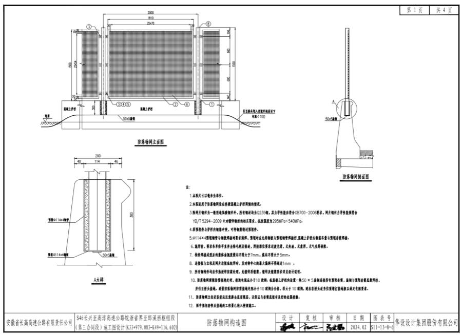 11.防落物网立柱安装前应注意磨去底面塑层,以保证与套筒底板有良好的金属接触。