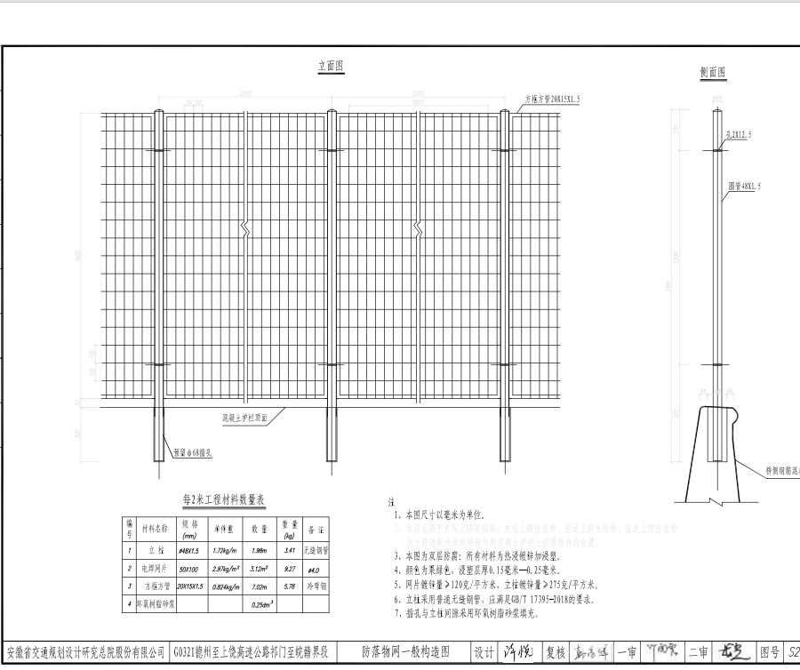 2、本土适用于主线上跨等级路,主线上跨匝道桥,匝道上跨主线桥,匝道上跨匝道桥及上跨通航河流的桥梁外侧混凝土护栏上防落物网的设置。