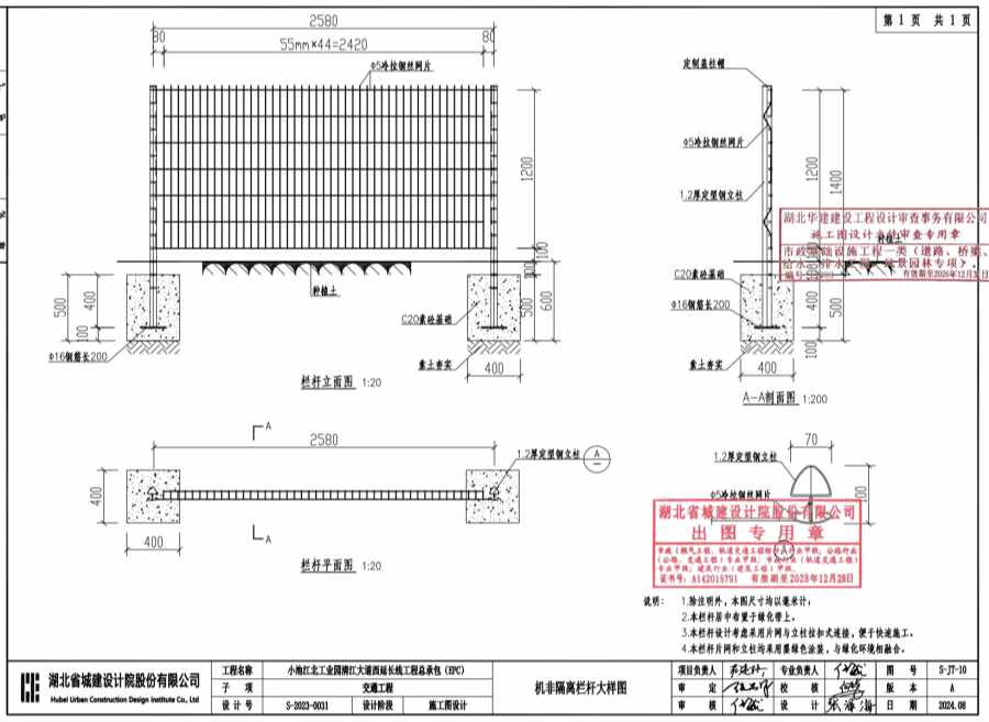 3.本栏杆设计考虑采用片网与立柱拉扣式连接,便于快速施工。