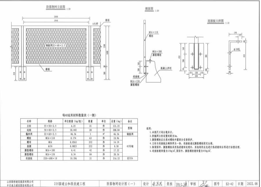 2.防抛网立柱设置间距为2米。