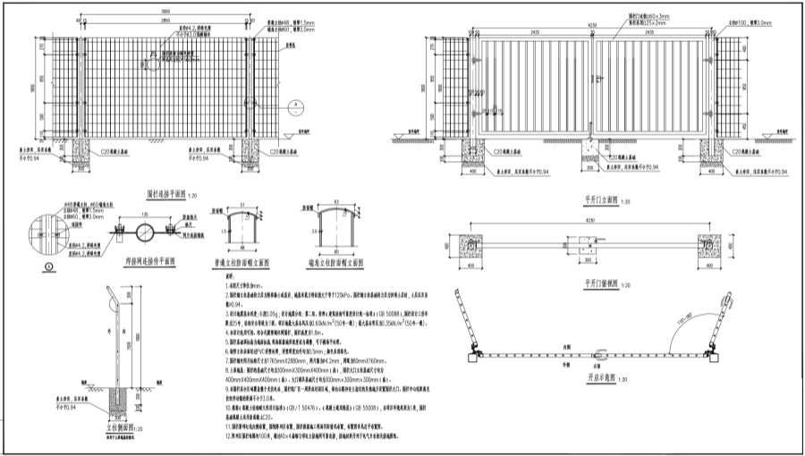 5.围栏基础顶标高为地面标高,现场根据地形坡度适当调整,可不做场平处理。