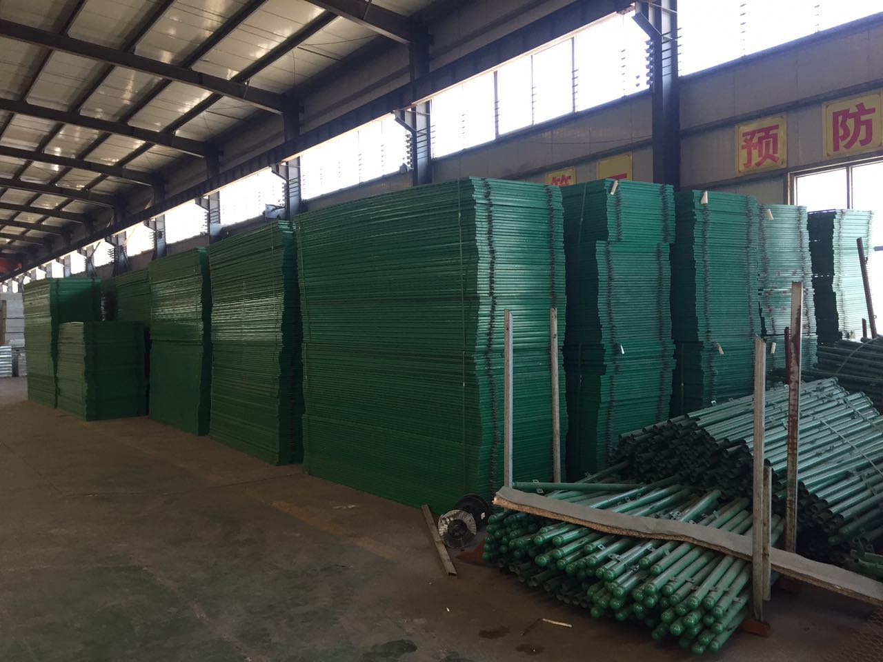 您于2017-02-11日在我厂订购的,尺寸1800*3000mm一套,丝径480,方管型号30*30*1,立柱型号52*52*1.2,表面处理喷塑绿色,数量1328套框架护栏网现已生产完毕打包入库。已经联系货站于今天下午一点半来我厂装车,货站联系方式以及货车车牌号吗已经发送到您尾号6969的手机上,如有任何疑问请电联朱经理18730835151,合作愉快。