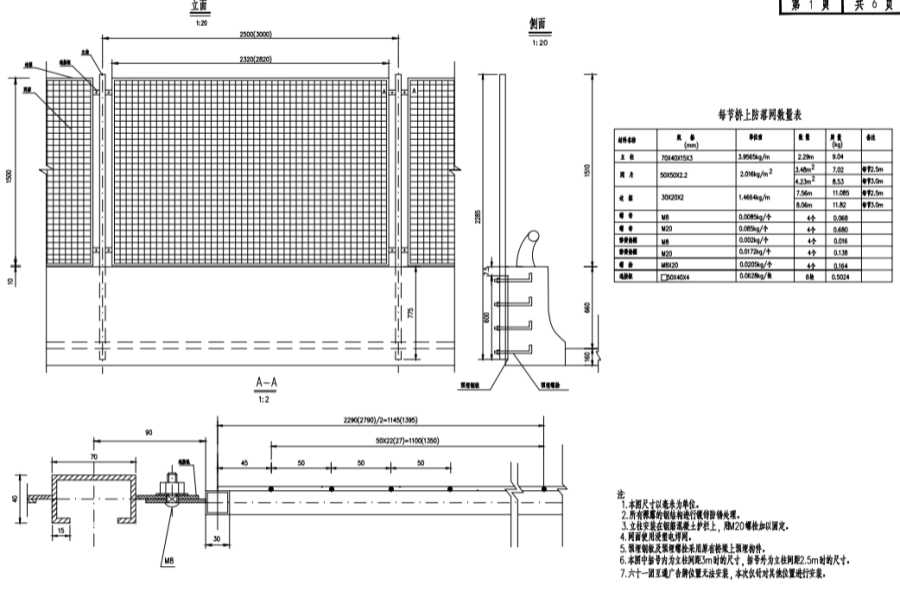 3.立柱安装在钢筋混凝土护栏上,用M20螺栓加以固定。